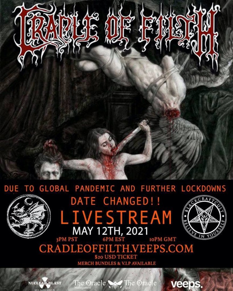 The concert will begin at 10pm BST and will be the first Cradle Of Filth live performance of 2021 AD, the year of the plague. Order your tickets for the live stream here: cradleoffilth.veeps.com