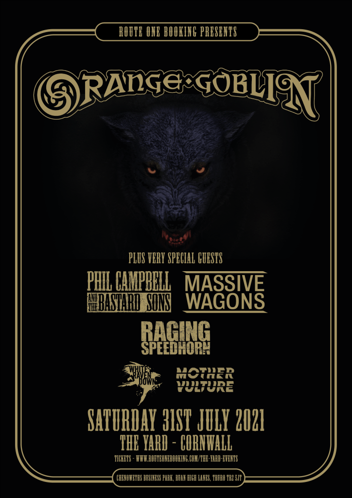 ‘As both an artist and an agent, I am thrilled and excited to be able to book Orange Goblin to launch the 2021 events at this astonishing new venue and to perform in Cornwall for the very first time. The Yard is a truly unique place and the line-up that Jules and I have been able to put together is testament to the hunger there is for bands to play in the south-west, as well as that same desire for fans to attend shows here. The plan is for this to be the start of something very special that can keep bringing top talent to the Roseland and make it a permanent fixture on the gig calendar!’ – Ben Ward, Route One Booking / Orange Goblin