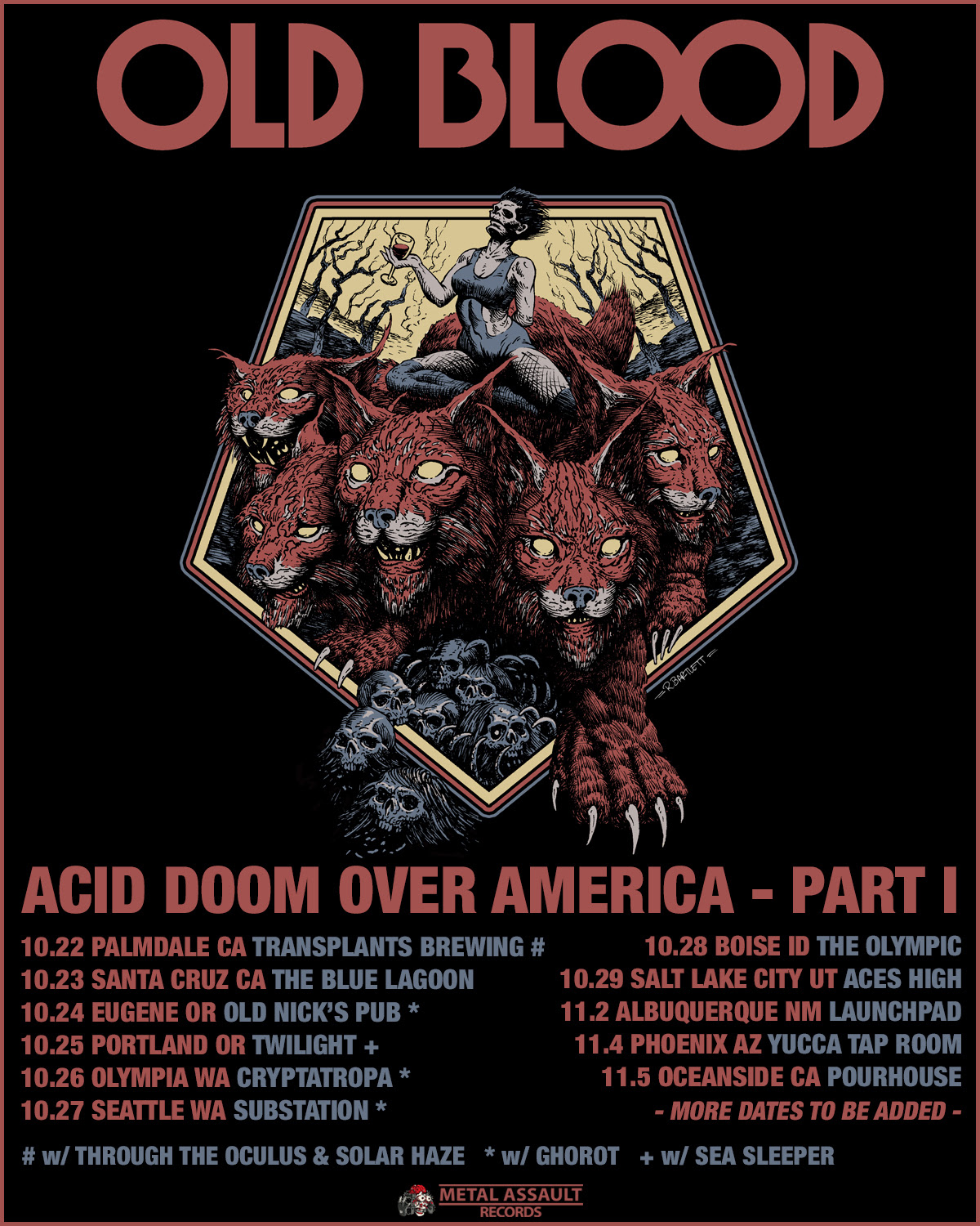While out on part 1 of the Acid Doom Over America Tour, OLD BLOOD will share the stage with three labelmates: Through The Oculus and Solar Haze in Palmdale, and Sea Sleeper in Portland. The three other shows in the Pacific Northwest will also feature spectacular blackened doom act Ghorot from Boise, Idaho.