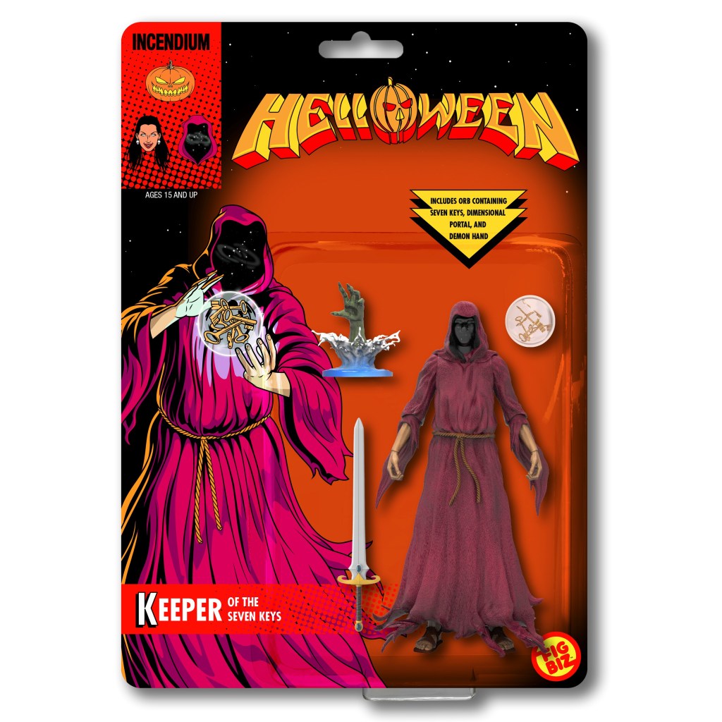 The first printing of the comic will be limited to 2,000 copies at $19.95, and is available to order from https://incendium.online/collections/Helloween. It is available to order now and ships by October 31, 2021. The Keeper Of The Seven Keys, The Witch, and Jack O. Lantern action figures are also available to pre-order for $29.95, shipping spring 2022.
