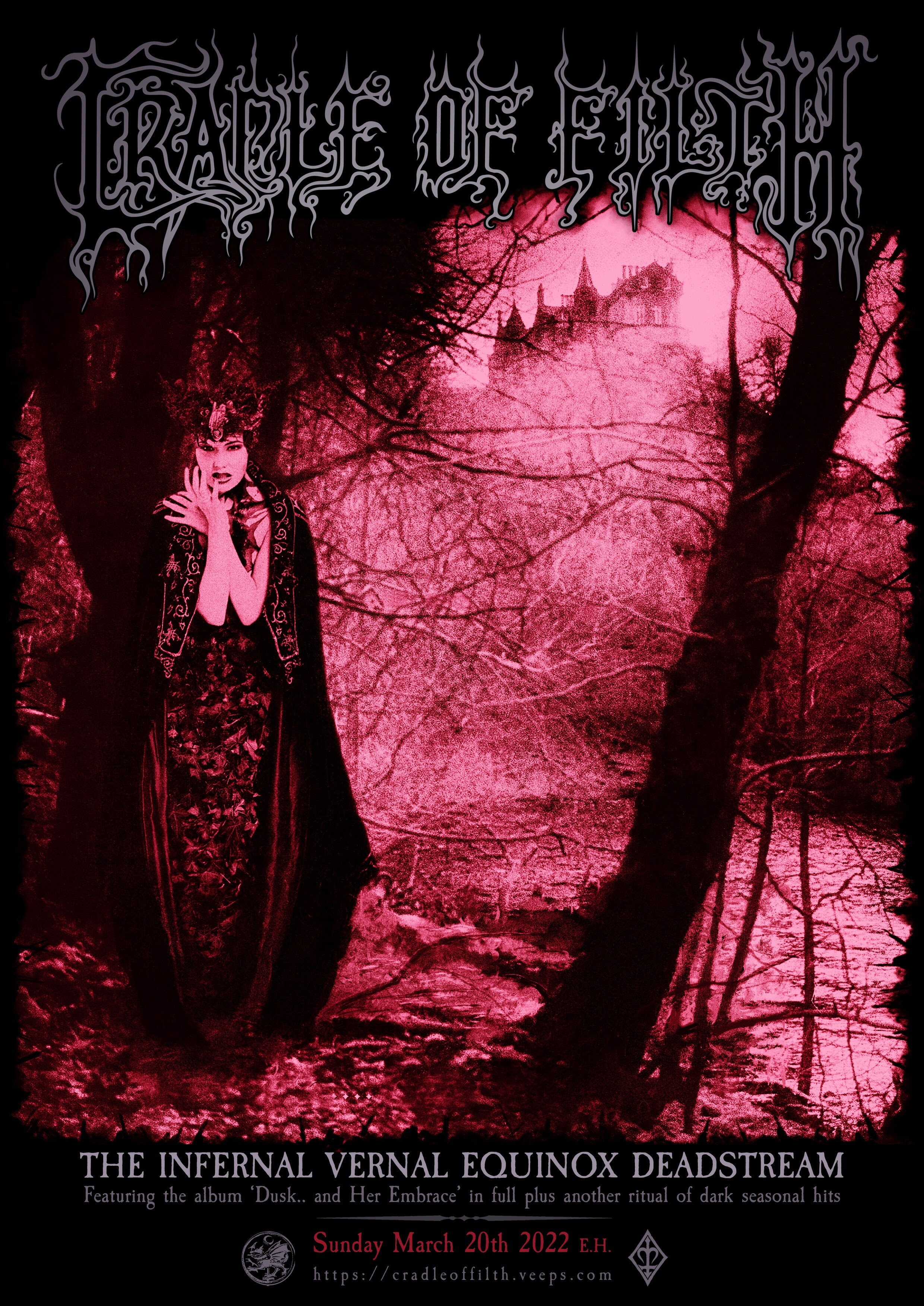 Hellish outfit Cradle Of Filth have announced a digital show stream, a one-off special performance titled ‘The Infernal Vernal Equinox‘. The concert will be aired this Spring Equinox, Sunday March 20th, during which the band will play monumental 1996 studio album Dusk… and Her Embrace in full.