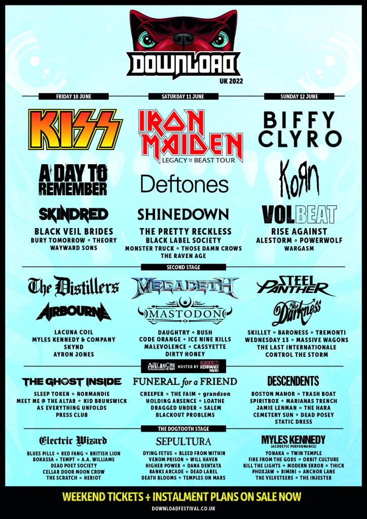 Download Festival, the world’s premier rock event, is coming back with a bang in 2022. The first major festival of the summer will be headlined by the mighty KISS, Iron Maiden and Biffy Clyro, with other huge acts on the bill including A Day To Remember, Deftones, KORN, The Distillers, Funeral For A Friend and many more. As the first full-capacity Download Festival since 2019 and following last year’s phenomenal Download Pilot, which paved the way for the return of live events, it’s pulling out all the stops for 2022 with a gargantuan line-up of the world’s most exciting bands in rock, pop punk, hardcore, metal and much more.