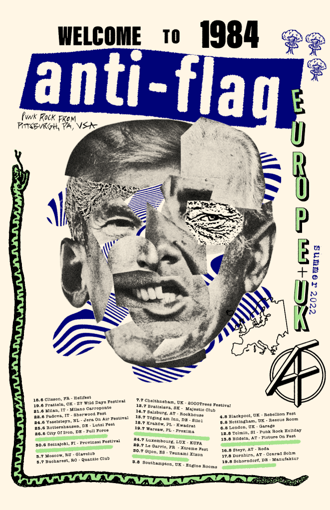 We are incredibly grateful, humbled and honored to announce many new shows and rescheduled festivals for this coming summer 2022. It’s been hard as fuck to go this long without sharing these stories, songs and empathy with the community of European comrades who have given Anti-Flag a home since the first time we came over almost 20 years ago.