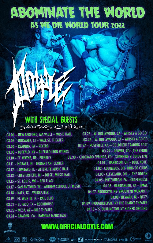Legendary Guitarist Doyle Wolfgang Von Frankenstein hit the road Friday with his ABOMINATE THE WORLD AS WE DIE TOUR 2022! Launching in New Bedford, MA, the tour will blaze across the United States, wrapping up April 10th in Burlington, VT!