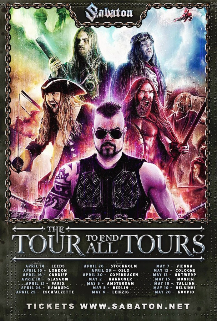 Following the release of their tenth studio album The War To End All Wars, SABATON arrive with a huge announcement today: Spring 2023 will see the band touring across Europe on the eagerly awaited re-scheduled tour: “The Tour To End All Tours”.