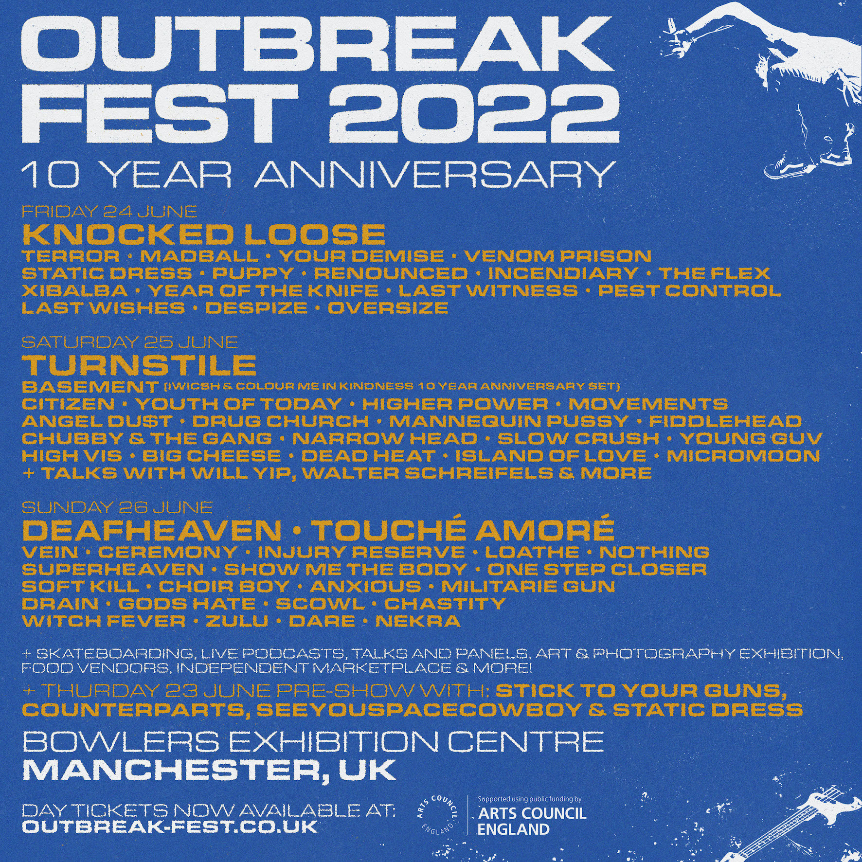 The bands will join the already announced headliners of TURNSTILE + KNOCKED LOOSE at the 10 year Anniversary weekend which will take place in the new home of the Bowlers Exhibition Centre, Manchester on 24th / 25th / 26th June 2022.