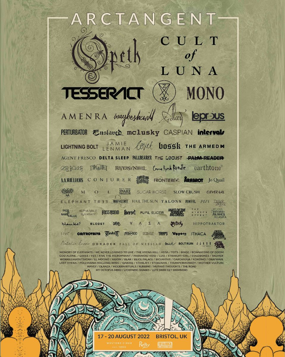 Opeth / Cult of Luna / TesseracT / Zeal & Ardor / MONO / Amenra / Maybeshewill / Alcest / Leprous / Perturbator / Enslaved / Mclusky / Caspian / Intervals / Lightning Bolt / Jamie Lenman / Covet / Bossk / The Armed / Agent Fresco / Delta Sleep / Pallbearer / The Locust / Palm Reader / Car Bomb / / Intronaut / Rivers of Nihil / Emma Ruth Rundle / Earthtone9 / A.A.Williams / Conjurer / IMPERIAL TRIUMPHANT / Frontierer / Arabrot / Jo Quail / Oranssi Pazuzu / MØL / The St. Pierre Snake Invasion / Sugar Horse / Slow Crush / Clever Girl / Elephant Tree / Hail The Sun / Talons / Wheel / Pijn / DVNE / Her Name Is Calla / Alpha Male Tea Party / Boss Keloid / Pupil Slicer / Heriot / Mass of the Fermenting Dregs / The Hirsch Effekt / My Own Private Alaska / Blanket / Blodet / Satyr / VASA / Zetra / Hippotraktor / BRUIT ≤ / Castrovalva / Tuskar / Catbamboo / SEIMS / Traps / Vogons / Ithaca / Skin Failure / Natalie Evans / Odradek / Fall of Messiah / MIËT / Bolt Ruin / Jakub Zytecki / Astrosaur / Memory of Elephants / We Never Learned To Live / The Hyena Kill / Heisa / TOTS / Binge / Bonnacons of Doom / God Alone. / Lakes / FES / Five The Hierophant / Paranoid Void / Luo / Straight Girl / Coldbones / Skemer / worriedaboutsatan / El Moono / Axiom / Bear / Beige Palace / Bicurious / Garganjua / Kokomo / Last Hyena / Pollyanna Holland-Wing / qariaq / STANLÆY / Stoßzahn / Thumpermonkey / Wavey / Mother Vulture / Olanza / Modern Rituals / Rubbing / Graywave / Mutant-Thoughts / The Road / My Octopus Mind / Lightning Sharks