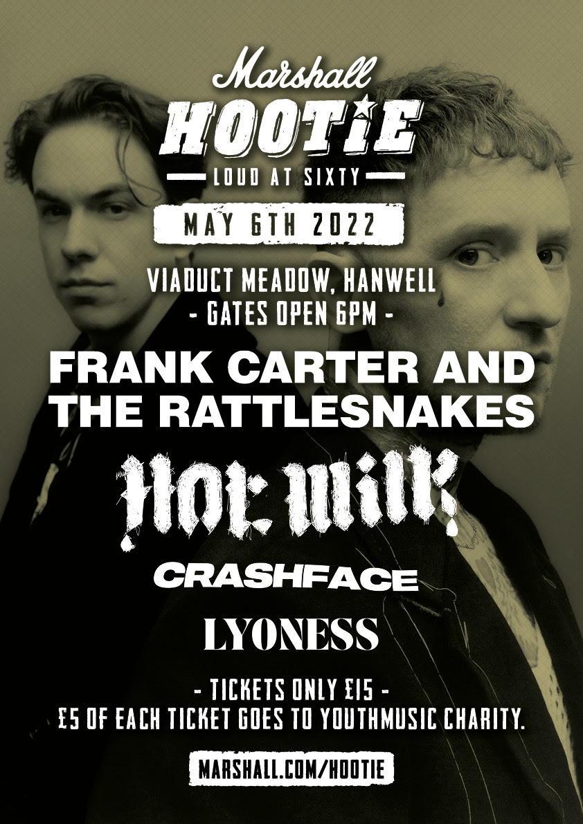 On Friday 6th of May Marshall will bring the world of Rock and Roll to Viaduct Meadow, Hanwell in honour of their 60th diamond jubilee in the form of Marshall Hootie – Loud At Sixty. The one-off festival will be headlined by Frank Carter and The Rattlesnakes and special guests to be announced.