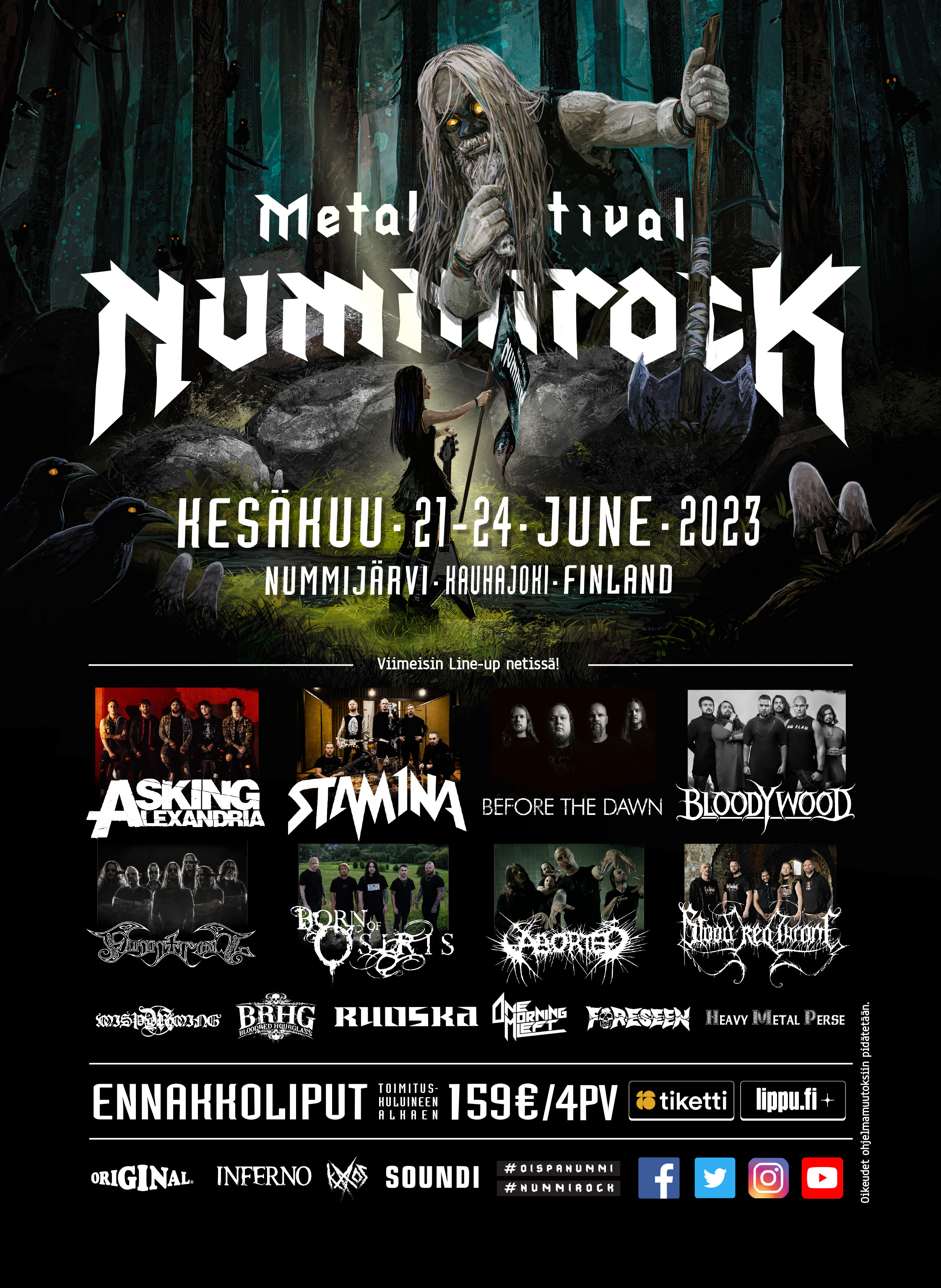 Nummirock 2023, which will be celebrated next Midsummer, will load its first performers to the table, and what a spread it will be! If midsummer celebrations have been held at the same place in Kauhajoki’s Nummijärvi since the 1930s, it has never been seen before when Asking Alexandria (UK), Bloodywood (IN), Born of Osiris (US), Aborted (BE), Blood Red Throne (NO) and Misthyrming(IS) all play their only festival gigs of the summer in Finland.