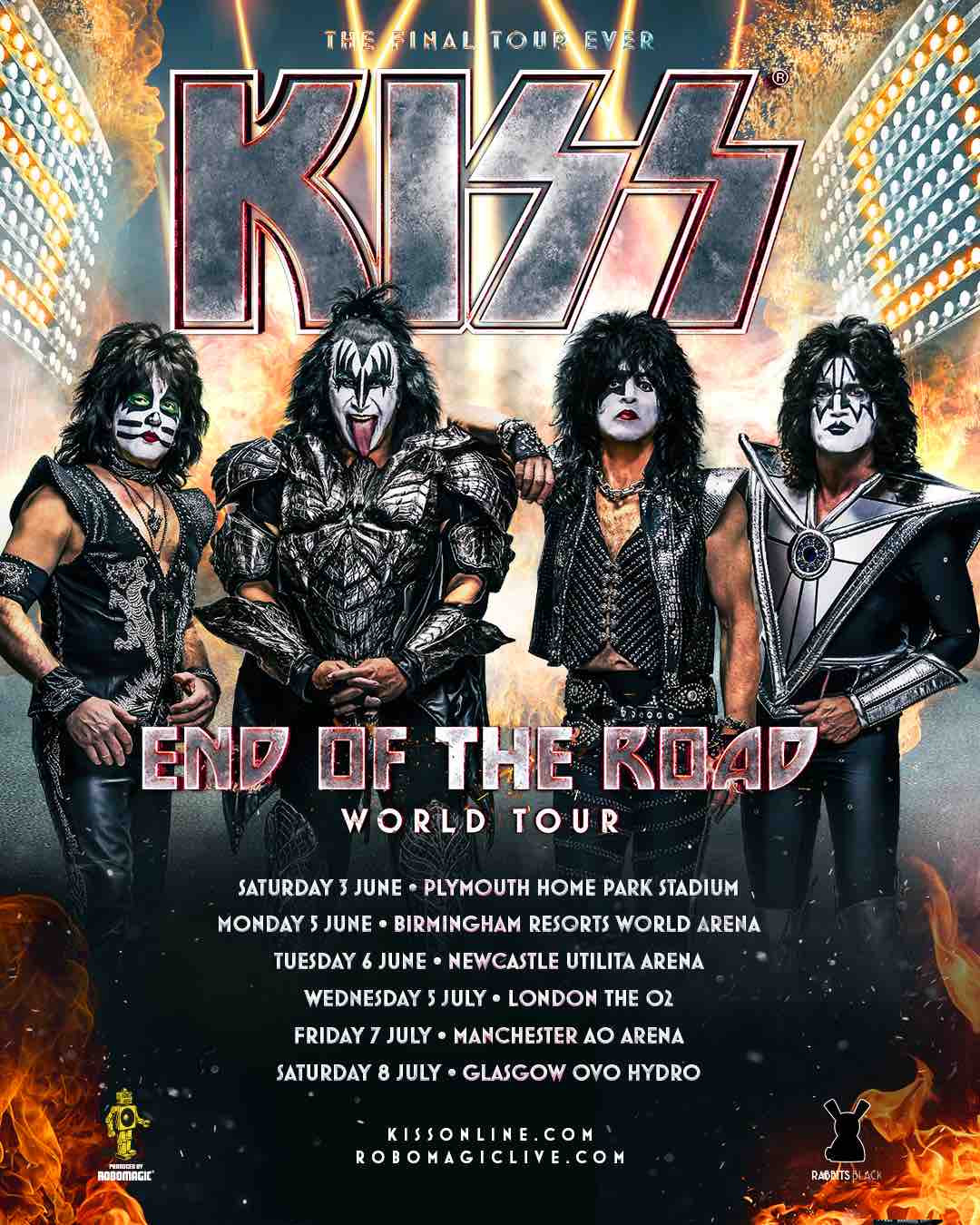 Since starting out in 1973, KISS has become one of the best loved bands out there and continue to wow crowds around the world. The END OF ROAD TOUR will officially come to a close in the UK in Glasgow on July 8. Before that, the tour will visit Plymouth, Birmingham, Newcastle, London and Manchester.