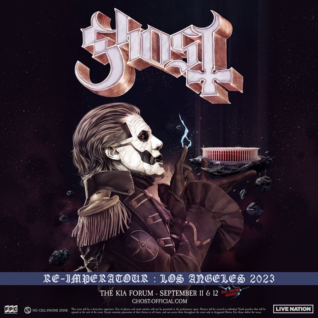 Due to overwhelming demand Ghost will be haunting the Kia Forum in Los Angeles for a second night on Tuesday, September 12th. As with every Ghost tour, RE-IMPERATOUR U.S.A. 2023 promises pyro, mummy dust, and a spellbinding ride through the Ghost catalogue.