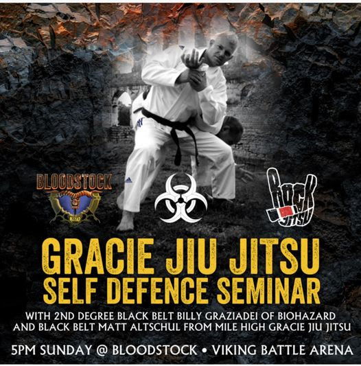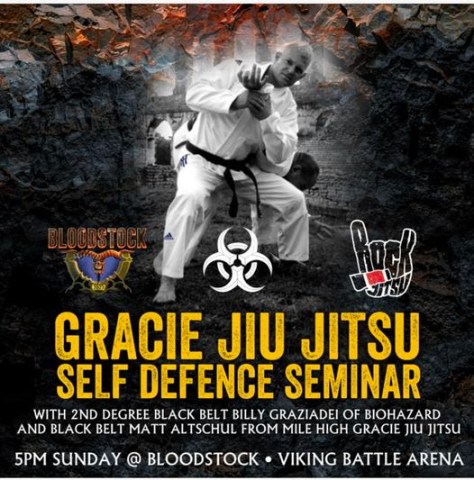On Sunday at 5pm, over in the Viking Combat Arena, join Billy Graziadei from Sunday night Sophie stage headliners BIOHAZARD and Matt Altschul from Mile High Gracie Jiu Jitsu for a one-off self defence seminar! Just head over for the start time!