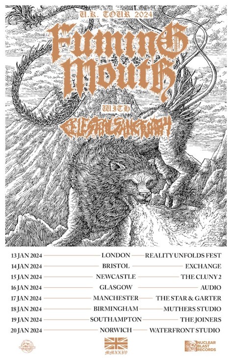 American death metal juggernauts FUMING MOUTH have announced their long-awaited, first ever tour of the UK happening January 2024 in support of their their highly-anticipated album, Last Day of Sun, that’s out November 3rd from Nuclear Blast Records. Tickets are on sale now!