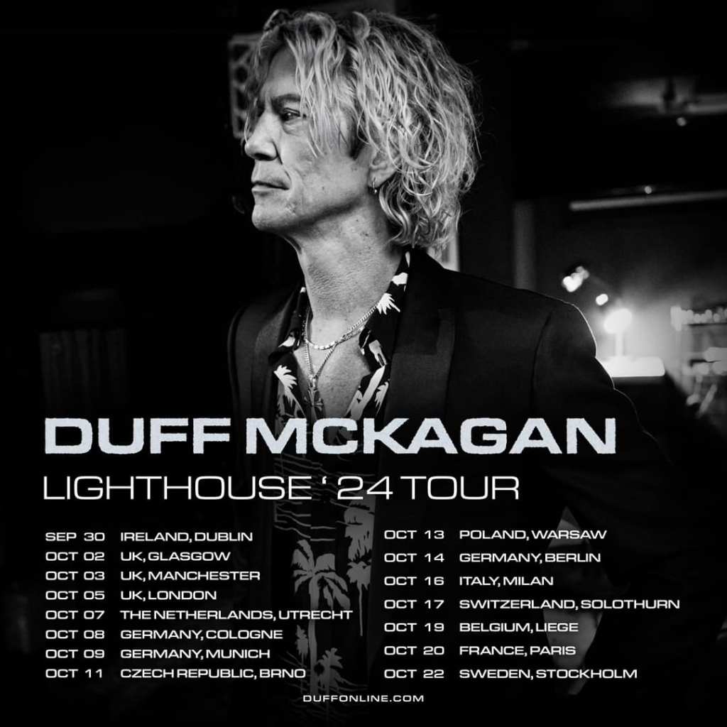 Following the successful release of his third solo album Lighthouse in October 2023, Duff McKagan is thrilled to announce a forthcoming headline UK and European tour in October 2024. Kicking off from Dublin, the series of shows will see the iconic musician play in fifteen cities in eleven countries bringing Lighthouse to life with his legendary live performances.