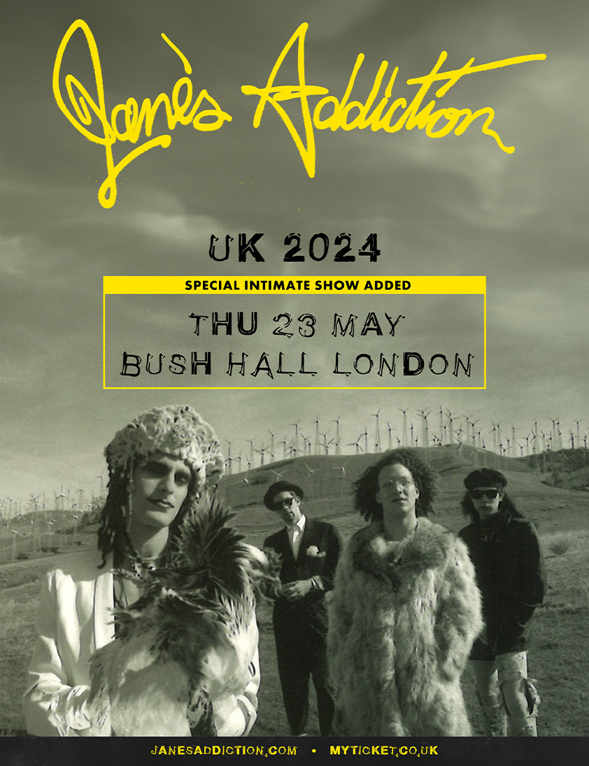 Legendary US rock band JANE’S ADDICTION today have announced a very special one-off intimate show at Bush Hall, London on 23rd May 2024. The show is on sale 10th May 2024 1pm – HERE.