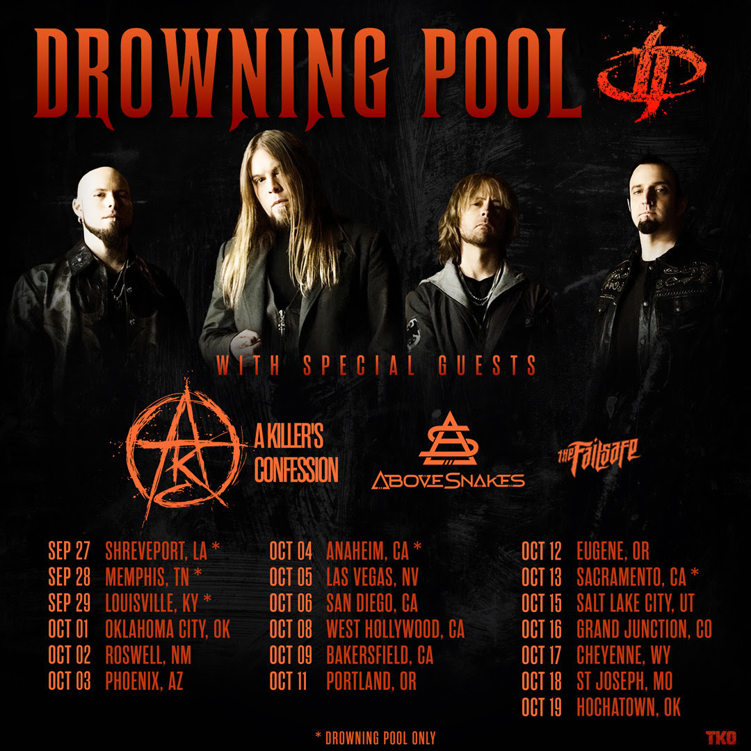 Drowning Pool, the iconic heavy metal band known for their electrifying performances and chart-topping hits, is thrilled to announce the No Authority Tour 2024 with special guests A Killer’s Confession, Above Snakes and The Failsafe.! This tour promises to be an adrenaline-fueled journey, featuring Drowning Pool’s dynamic return with lead singer Ryan McCombs. Fans can also look forward to the release of brand new music, including their first new single with McCombs in 13 years. Keep an eye out in the next few weeks for this highly anticipated track!