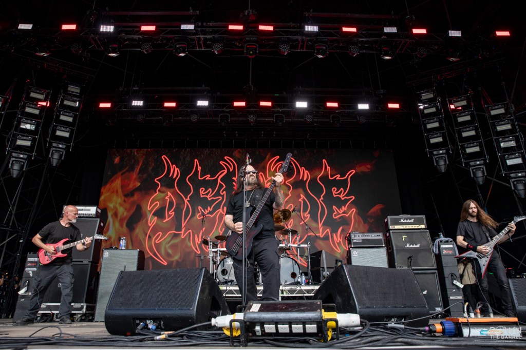 American metalcore band Hatebreed is celebrating their thirtieth anniversary as a band, and they showed no signs of slowing down, being at the top of their game with a massive, dedicated and passionate crowd of headbangers and moshers galore, which I witnessed during the second half of their set. They unleashed their ‘ball of death’ into the crowd, which was quirky, especially as the ball ended up getting lost in the VIP serpent’s lair area in the end rather than continuing to circulate the main crowds and provided amusement watching as everyone struggled to get it back over. They played a great cover of Slayer’s ‘Ghosts Of War’ which went down a storm. I caught some of their best tracks, such as ‘Looking Down The Barrel Of Today’ and the closing ‘I Will Be Heard’ leaving their mark fully trampled into the Bloodstock attendees, with frontman Jamey Jasta earlier in the set stating they will be back at Bloodstock for their fortieth anniversary and the fans and the festival will undoubtedly hold them to that after their reception.