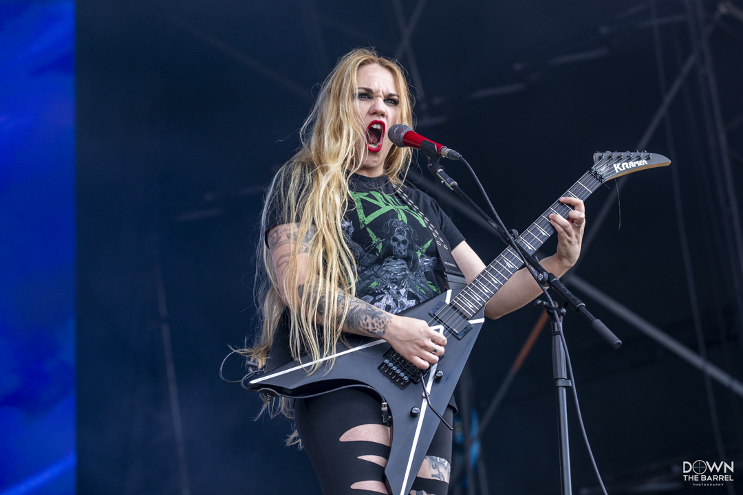 New traditional metallers Tailgunner only launched in 2022 and released their debut album, ‘Guns For Hire,’ in July last year. They have already made a name for themselves. I was very impressed with their performance at a rammed-out tent on the Sophie Lancaster stage, which was the first band on the festival’s opening day for me, and what a way to kick things off. The crowd and energy were insane, with constant mosh pits and crowd surfers for the entirety of their 40-minute set, showing just how much support the band have and making them an unstoppable force that is only surely going to rise in the ranks. It won’t be long before they land higher slots on festival bills! They had a lot of showmanship and an impressive shred off, with the two guitarists seeming beyond their years and were a definite highlight for me.