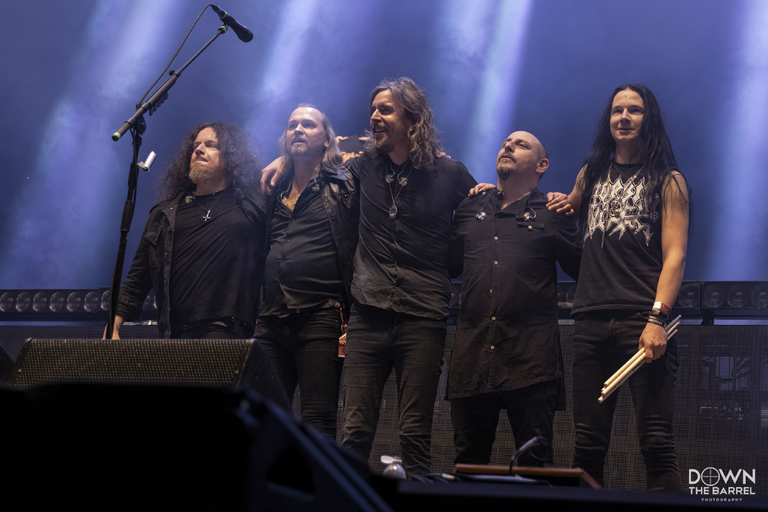 Progressive metal veterans Opeth are no strangers to Bloodstock, and the 2024 edition marks their third time headlining at the festival. They first headlined in 2008 and then again in 2010 when they were added to the bill in the wake of the passing of Ronnie James Dio (whom the festival gets its main stage name from), who was due to headline with his band Heaven & Hell. The fact that they keep getting invited back is evidence of their success and how they have shaped and helped Extreme Metal excel in their career. And to make this third headlining appearance even more special, the set was voted for by the fans as charismatic and witty vocalist Mikael Åkerfeldt pointed out, the set featured primarily old songs and joked that the message implied was that they hadn’t done anything decent in like fifteen years which got a laugh from the huge adoring crowd which wasn’t entirely true as the set did feature the splendid ‘Sorceress’ from their twelfth album released 2016 under the same name. Akerfeldt and co exuded charm and confidence and made their set look effortless whilst playing out their most loved hits such as ‘In My Time Of Need’, ‘Ghost Of Perdition’ and ending on the colossal and turbulent ‘Deliverance’ delivering a smooth, grand and immersive set. The only thing that could have made it even better would have been if they played ‘Blackwater Park’, but given how lengthy many of their songs are, they couldn’t fit it all!