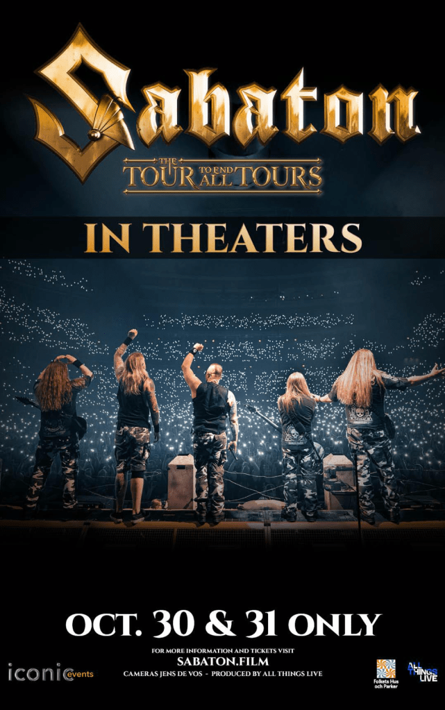 Swedish metal band Sabaton’s “The Tour To End All Tours” concert film aired in theatres in Europe, the UK and Australia on October 11, 2024. As a huge Sabaton fan, I visited my local UK cinema to check out this heavy metal concert experience.