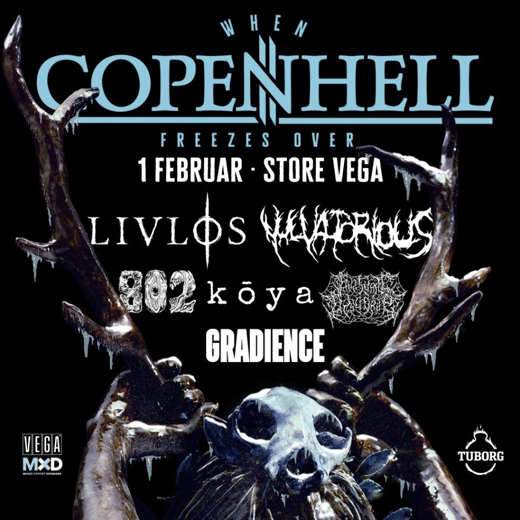 When COPENHELL Freezes Over 2025 will kick off on February 1, 2025 in VEGA in Copenhagen with Danish acts LIVLØS, VULVATORIOUS, 802, KŌYA, GRADIENCE and GUTTURAL DISGORGE ready to tear the place apart. The event is a partnership between COPENHELL, VEGA and MXD, and the six bands are carefully selected, as we believe that they are stars of tomorrow and have what it takes to get an international breakthrough. Several international industry reps are invited to the concerts – maybe the next BAEST or Volbeat will be discovered on this evening.