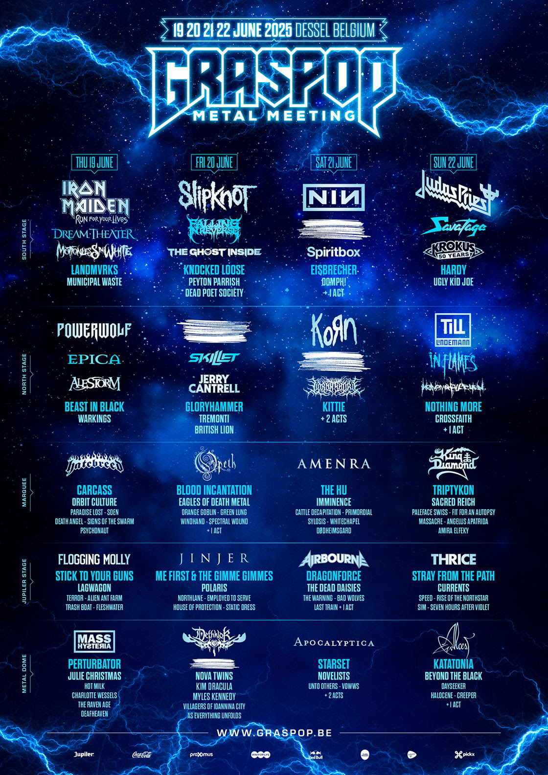 About GMM: four days, five stages. Jaw-dropping headliners, emerging talent, furious blast beats and raging mosh pits. For the 28th time the crème de la crème of the international hard rock and metal scene will converge on Graspop Metal Meeting. Once again, Dessel will shake to its very foundations. This year’s edition of the largest and most versatile hard rock and metal festival of the Benelux takes place from 19 through 22 June. GMM 2025: the metal highlight of the year for every metalhead!
