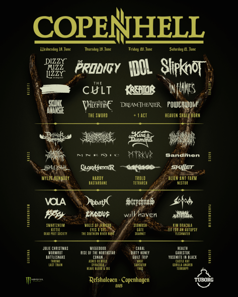 SLIPKNOT – THE PRODIGY – BILLY IDOL – DIZZY MIZZ LIZZY By Request – THE CULT – KREATOR – DREAM THEATER – KING DIAMOND – BULLET FOR MY VALENTINE – SKUNK ANANSIE – IN FLAMES – POWERWOLF – LORNA SHORE – SKILLET – DETHKLOK – HARDY – BLOOD INCANTATION – MYRKUR – THE SANDMEN – MYLES KENNEDY – HEAVEN SHALL BURN – VOLA – CATTLE DECAPITATION – CARCASS – THE SWORD – POPPY – CABAL – KITTIE – EXODUS – SODOM – FIT FOR AN AUTOPSY – ABBATH – MNEMIC – ALIEN ANT FARM – GLORYHAMMER – KIM DRACULA – SYLOSIS – SLOMOSA – DIRTY HONEY – NESTOR – ANAAL NATHRAKH – DEAD POET SOCIETY – WALLS OF JERICHO – EYES X SYL – JULIE CHRISTMAS – GÅTE – WILL HAVEN – STRYCHNOS – LAST TRAIN – RISE OF THE NORTHSTAR – SWARTZHEIM – HEALTH – TROLD – GABESTOK – BATTLESNAKE – WIEGEDOOD – WORMROT – CASTLE RAT – GUILT TRIP – THE SOUTHERN RIVER BAND – ASHES OF BILLY – CONAN – FLESHWATER – GORILLA ANGREB – BRAT – SARCATOR – TETRARCH – THROWE – BASTARDANE – YOSEMITE IN BLACK – HEAVE BLOOD & DIE – THUS – TERRORPY – SKARNET – SYRACUSÆ