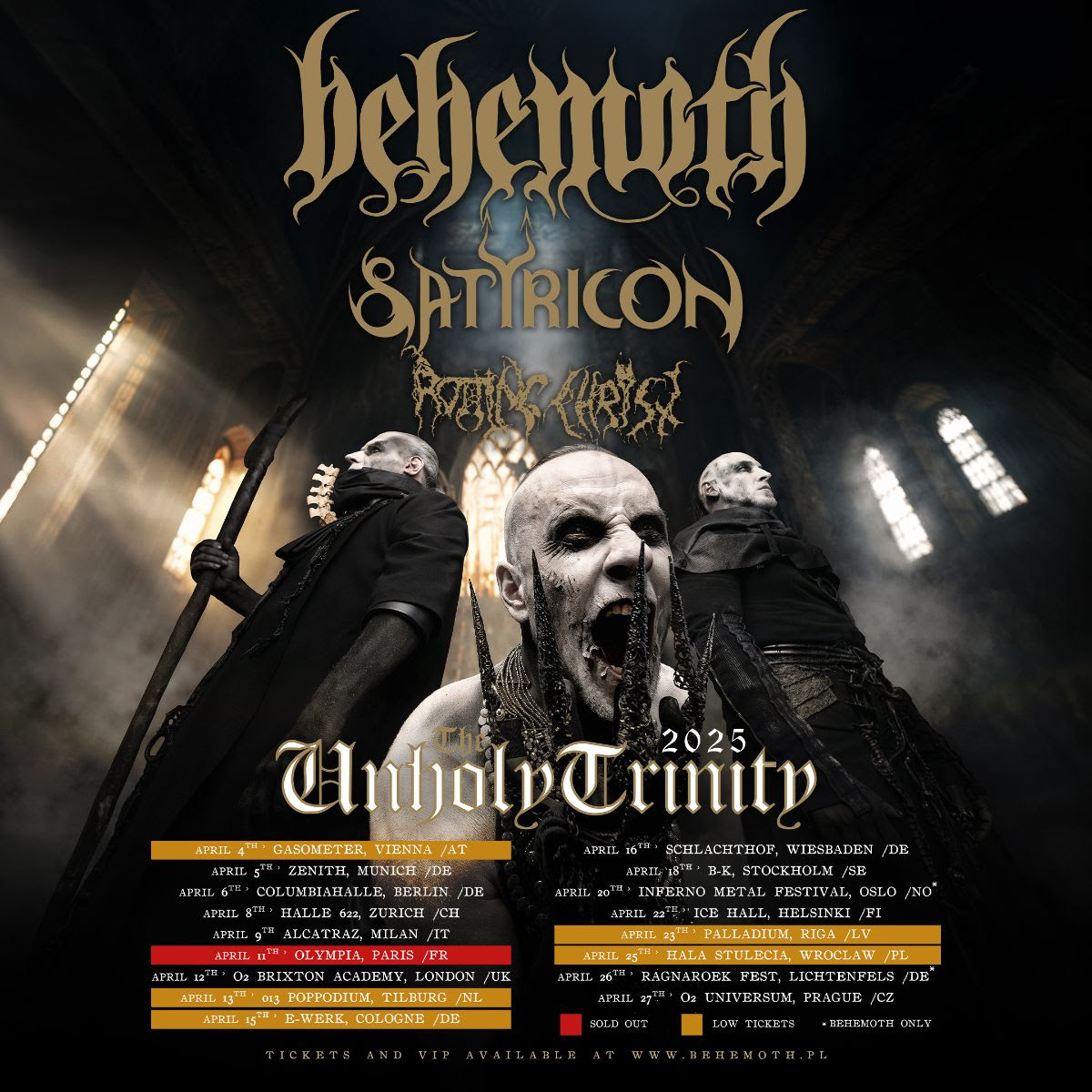 Don’t forget to catch Behemoth live on their “Unholy Trinity” headline tour with Satyricon and Rotting Christ. All dates and ticket info at the bottom.