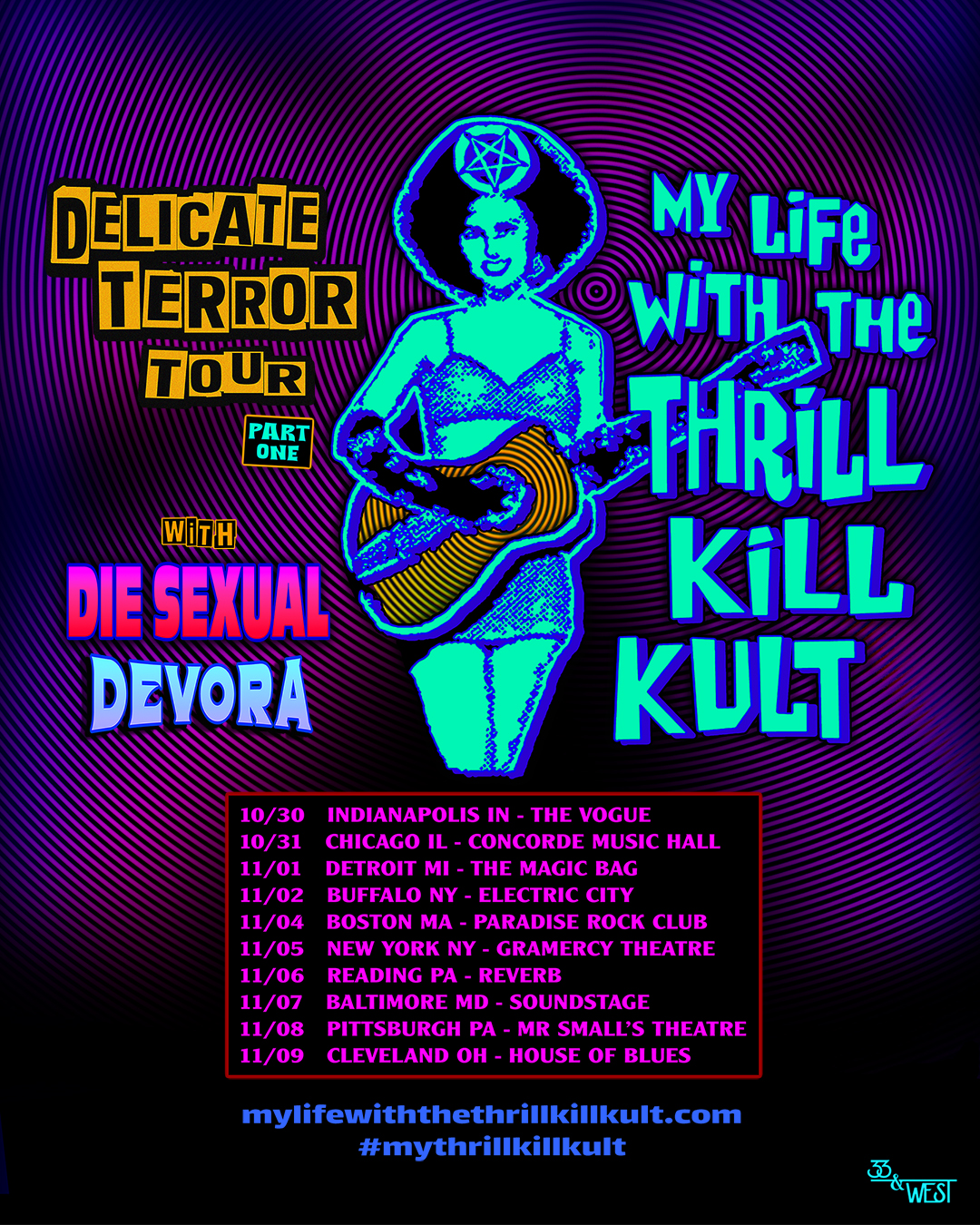 My Life With The Thrill Kill Kult, the genre-defying pioneers of industrial-disco-debauchery, are proud to announce their Delicate Terror Tour: Part 1. This blistering trek this fall promises an unholy communion of twisted visuals, pulsing beats, and the darkly glamorous chaos that only TKK can conjure.