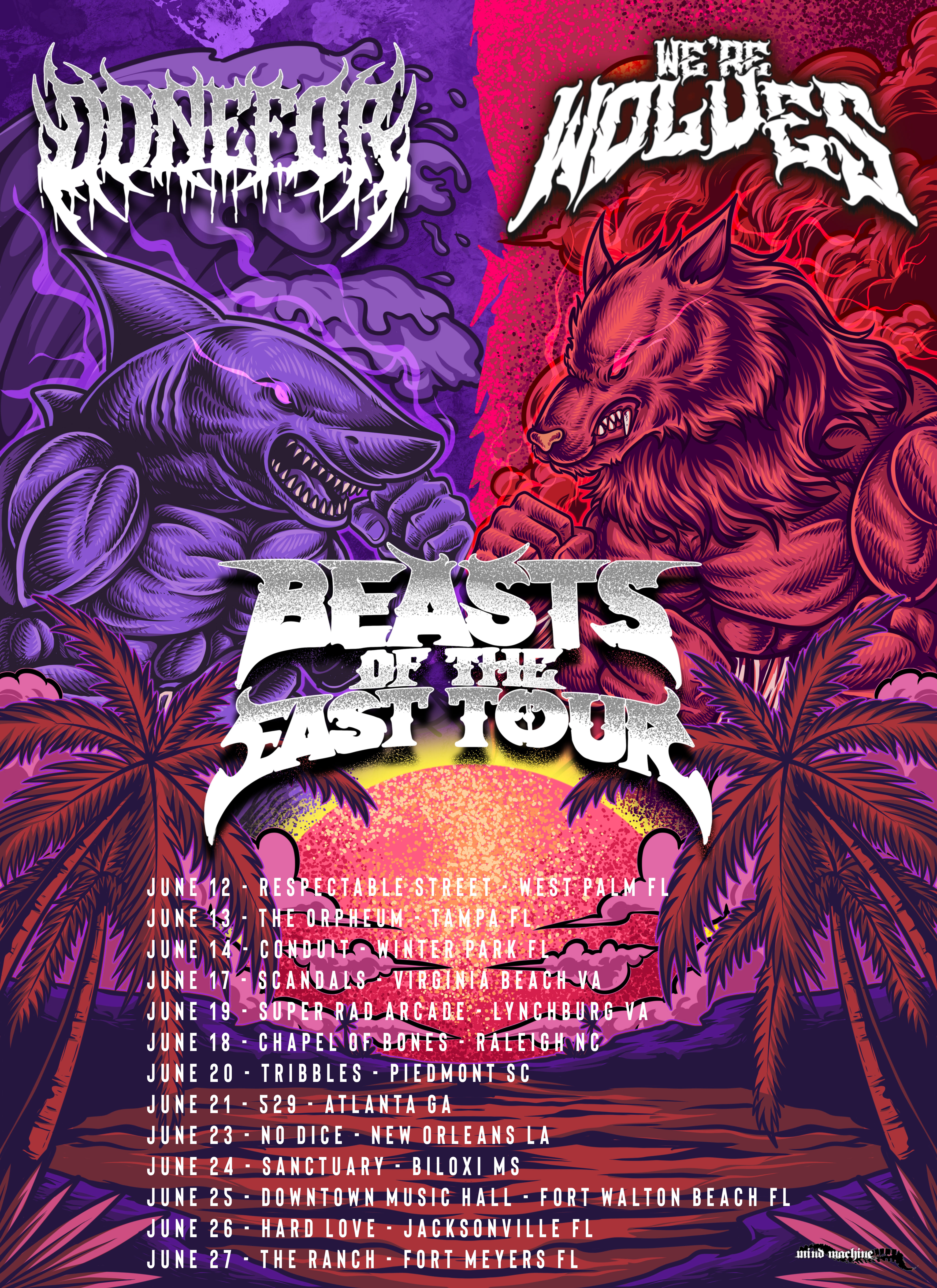 The “Beasts of the East” Tour promises a relentless mix of aggressive riffs, powerful vocals, and electrifying live performances as both bands hit the road to showcase their signature sounds. Known for their raw intensity and emotional depth, DONEFOR has been gaining momentum with their hard-hitting style and commanding stage presence. Meanwhile, We’re Wolves continue to carve out their place in the scene with their blend of modern rock energy and atmospheric edge.