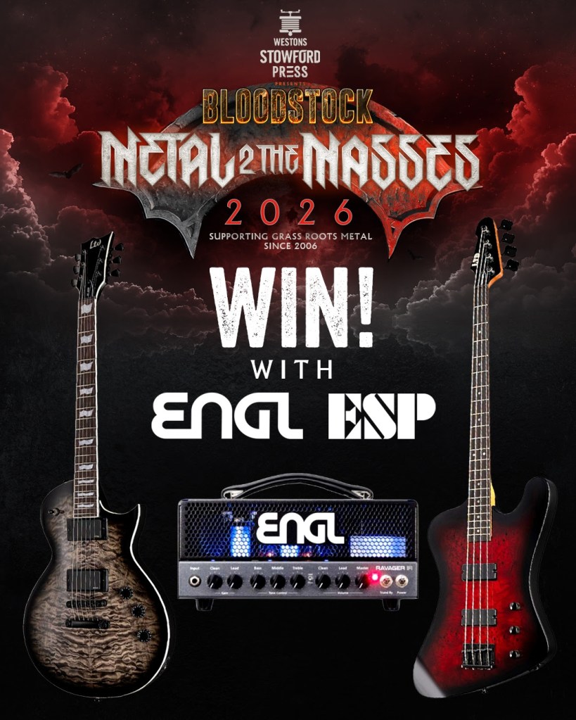 In exciting news for all BLOODSTOCK’s M2TM winners this year, fellow sponsors ESP and Engl Amps are offering up 3 incredible prizes, to be chosen from amongst the M2TM victors performing at the festival and presented on Sunday evening. The prizes include a new-for-2026, EC400 Quilted Maple guitar in See Through Black, a Phoenix 204DX bass in Redburst, and a Ravager IR amp head with a matching 1×12 Cab!