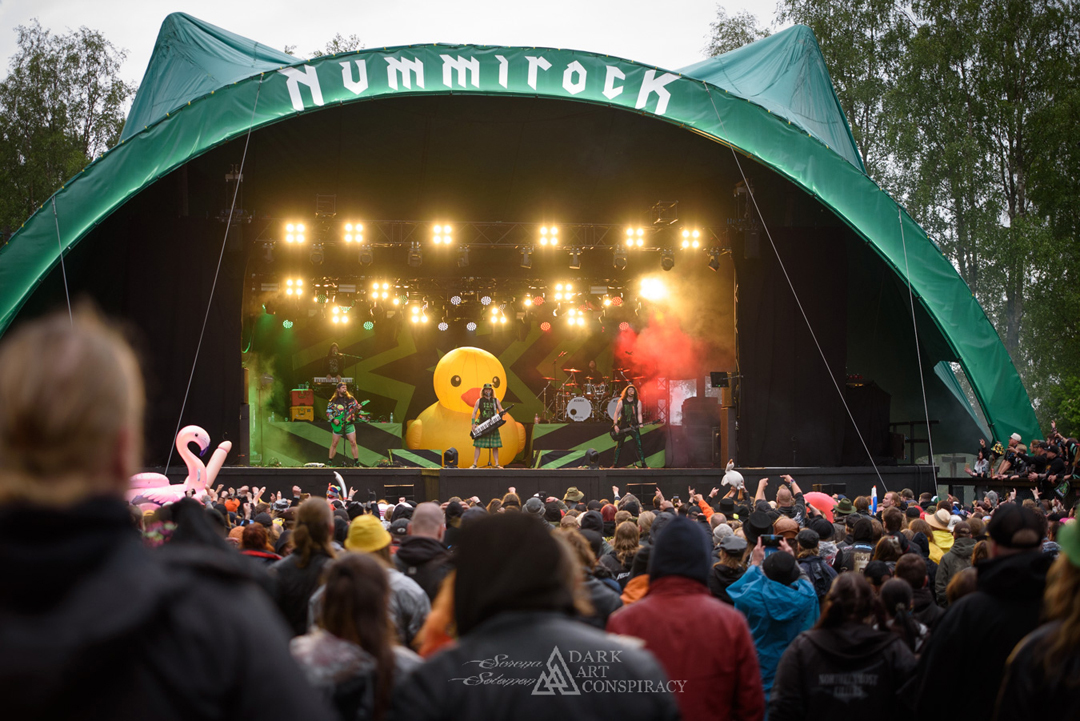 Saturday brought the kiddies once again to the festival grounds. Whenever Hevisaurus is around, Nummirock opens its doors to the tiny metal heads in training including other special activities and attractions for them to enjoy. My day started with a most epic Cemetary Skyline in the rain. The rain might deter others from heading to the stage but not the dark hearted! It only added to their sombre gloomy atmosphere. I tried to catch both Tampere Burlesque sets but they had massive scheduling issues, even though they had the stage ready for the following band before burlesque started, they cut the first set short one act, and started the second set earlier than scheduled (which was pretty disappointing on the side of the organizer). I hope they get a bit more effort and recognition on the organizers part next year! Anyway, Alestorm was on the main stage this year, and brought their genuinely epic party tricks to the fesitval! The party mode continued from there straight until the end with King Satan, Korpiklaani, Turmion Kätilöt and Stereo Terror DJs. I have to say I was thoroughly, unexpectedly impressed by the vibe at the Korpiklaani gig. Their set design and lighting was stunning and the gig itself was perfection on the Inferno stage in the sunset. Turmion Kätilöt, once again, was a perfect ending to another amazing year.