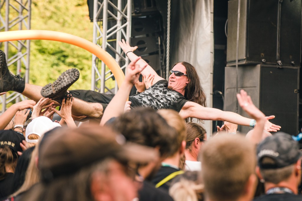 Some heavy hitters were delivering the best tho and that was Devourment from Texas with their brutal death metal. And they were not the only one in the day. Later on, ExterminationDismemberment and Korpse showed some nice work with a public and forced the people cheerfully to do some moshing, stage diving and even wall of death with their guttural rich music. Little less intense with brutality, but with added melodies, RiversofNihil played on one of main stages. Vola or Czech Avatar was even further in progressive approach with their music. AtTheGates continued with the milder aspect of the genre later in the night.