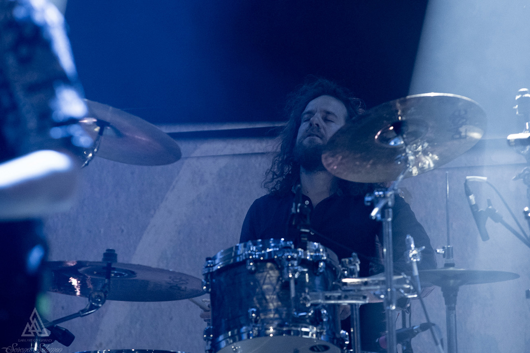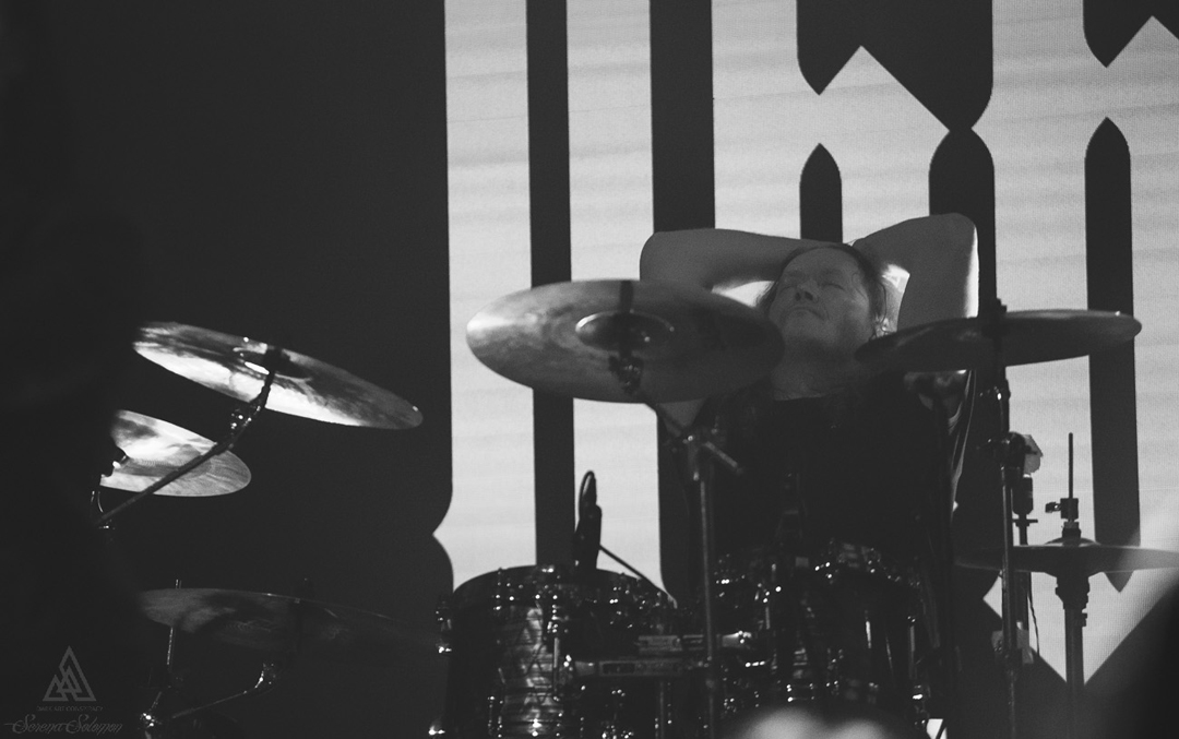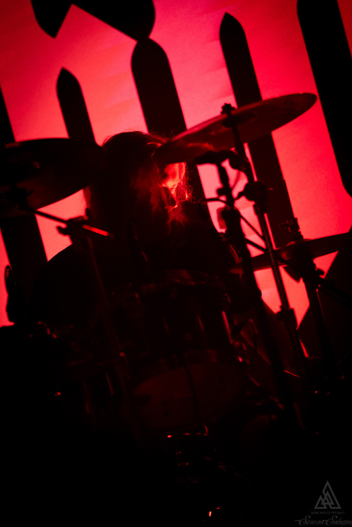 I absolutely loved the fact that although Tribulation only played three shows on his leg of the tour (two in Finland and one in Oslo) which were smaller clubs, they still put effort into their stage decor and presentation. Not only the large backdrop and custom drums but unique details through out the rest of the setup as well. Beautiful backlit side panels reminiscent of church windows adorned with shapes of bats and skulls. Each member having their own light in front of them so they were lit from below. Large decorative incense holders for both sides of the stage complete with incense (also love that extra sensory level during live gigs!). All of those details plus their stage clothes, makeup and overall vibe fit flawlessly with their sound, tying it all together with that common horror element that has been part of their sound and aesthetic since the early years. Pure gothic/horror ambiance with a death metal core.