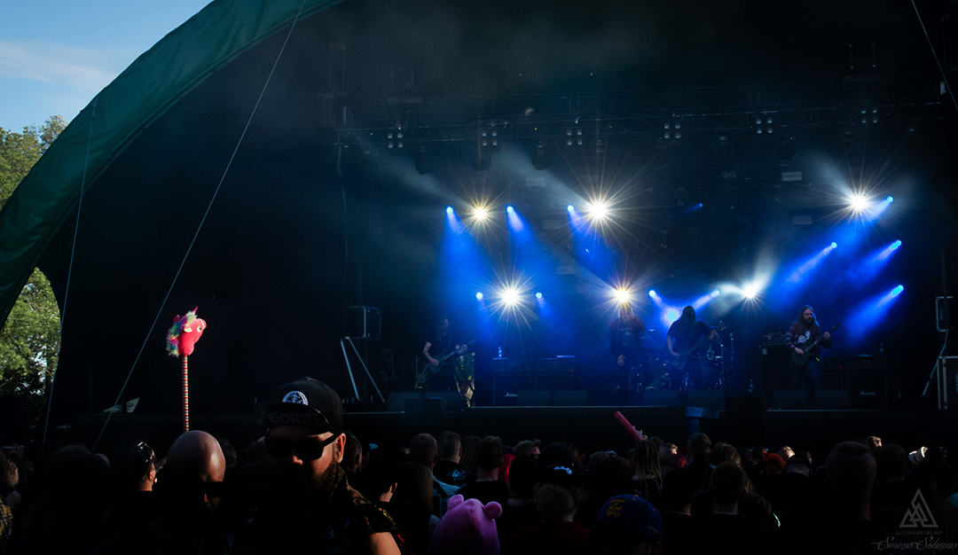 Other personal highlights of the first night included Noiduin, who’s pagan sound and aesthetic was perfect to get the midsummer madness started and Havukruunu who’s performance was full force as always and brought the rain to add to the epicness of the first evening of midnight black metal.